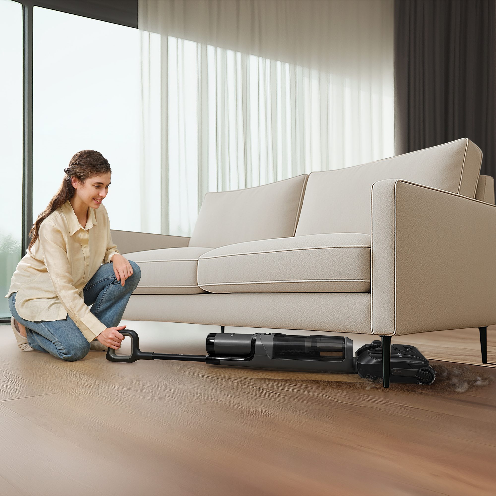 Se pliază aproape complet (≈ 13 cm înălțime când este în poziție ly-flat), ceea ce-i permite să curețe sub mobilă joasă, canapele, paturi etc., fără să ridici mobila.