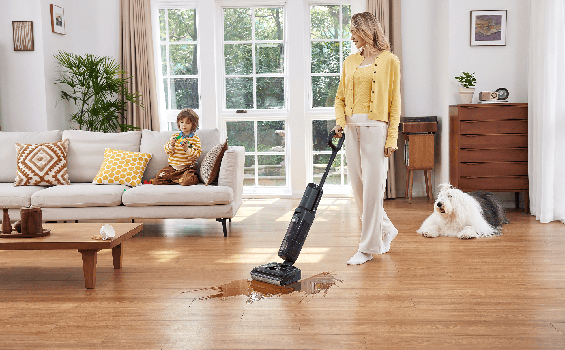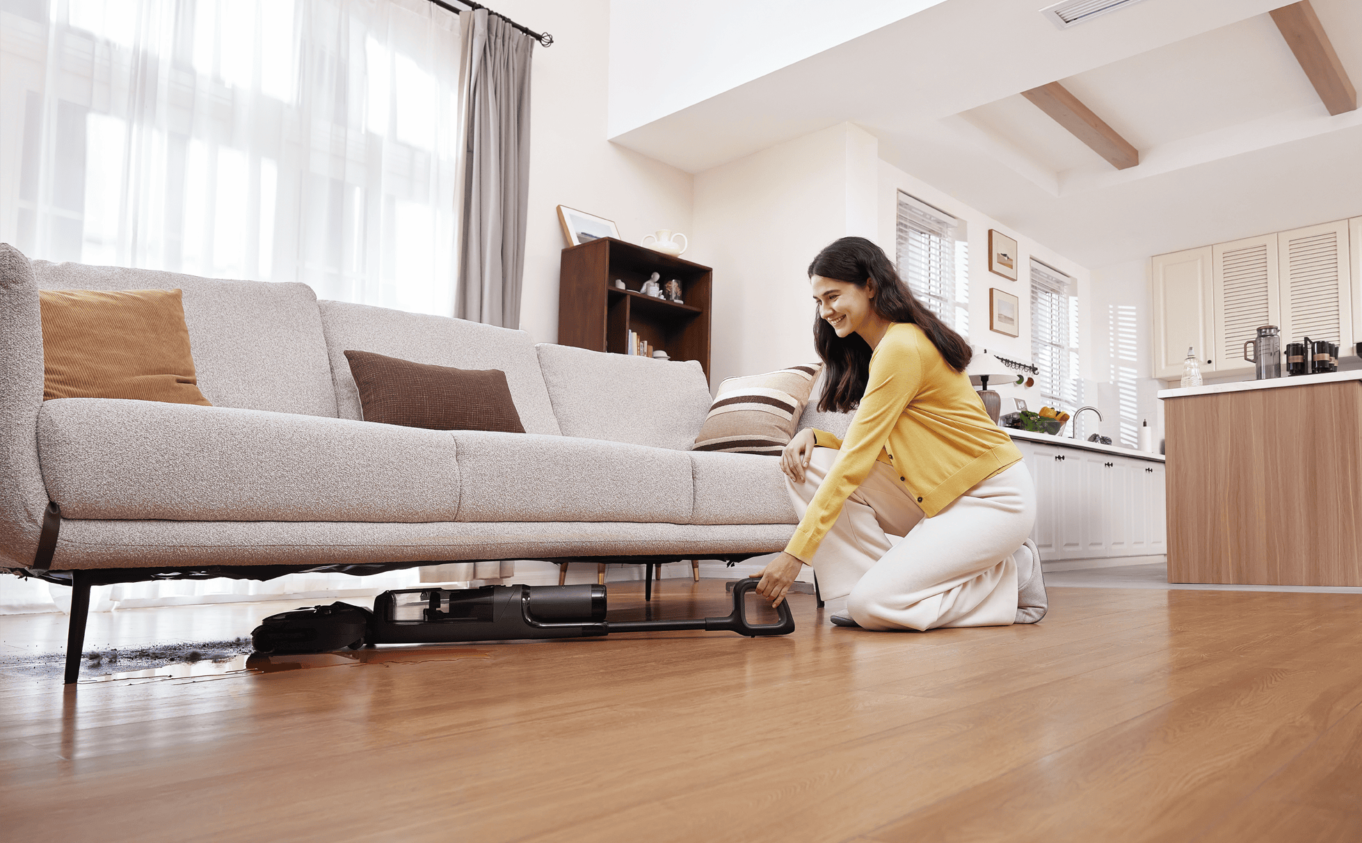 Aspira + spală simultan, astfel încât să elimini murdăria, praful și petele într-o singură trecere, economisind timp și efort.