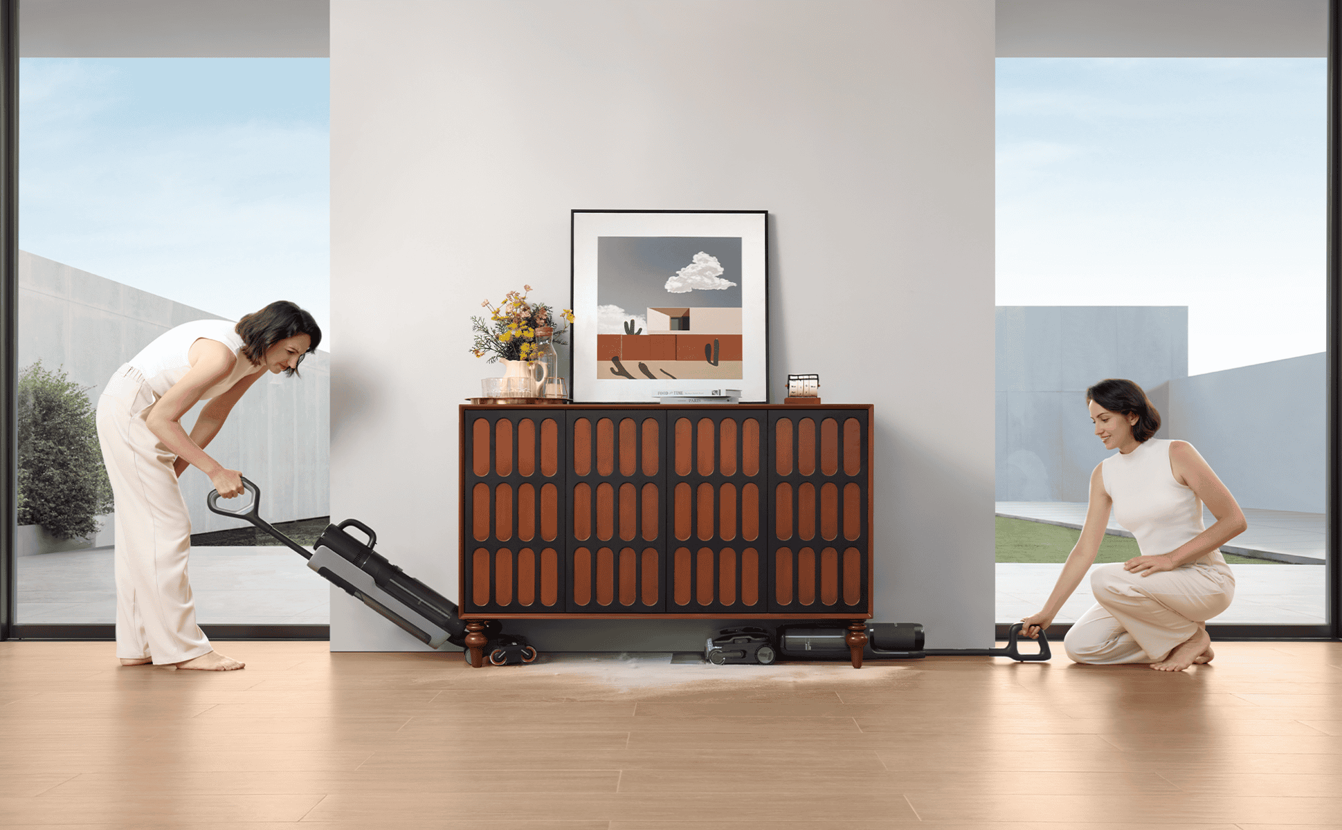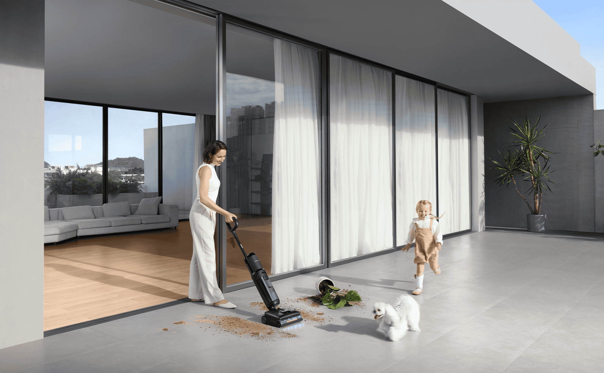 Permite compresia aparatului până la ~5,1 inchi, cu un sistem de separare în 3 camere a apei murdare. Astfel, motorul rămâne protejat, iar puterea de aspirare și spălare este păstrată, chiar și când aparatul este folosit la nivel joasă aproape de podea